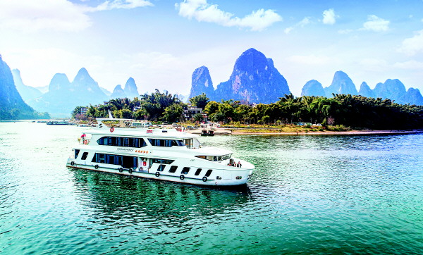 ▲桂林市实施漓江“三统”管理体制改革,树立全国江河综合治理典范。图为广西首艘五星级新能源豪华游船,采用电力推进系统,有效保护漓江生态环境,为打造世界级旅游城市助力。陆宇堃 摄