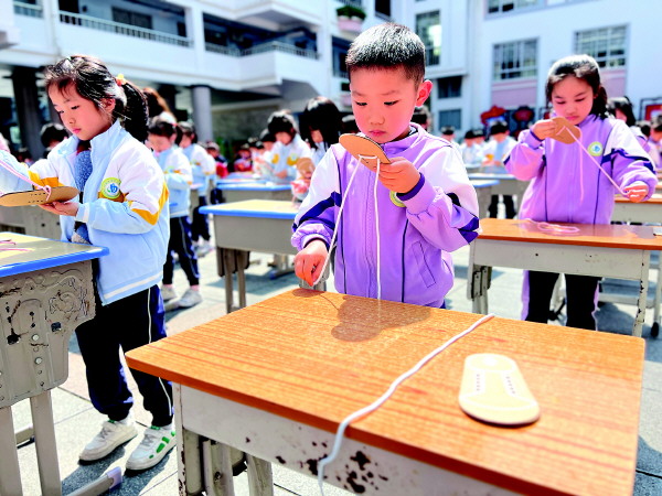 本报讯(记者张苑 通讯员陈文奇 文/摄)为迎接“五一”国际劳动节的到来,近日,一场别开生面的劳动技能大赛在市中华小学上演。全校千名学生齐上阵,按年级参与不同项目。通过趣味性的现场比拼,孩子们在体验中学习劳动技能,“劳动最光荣”“劳动创造美”的理念也悄然植入孩子们的心田。