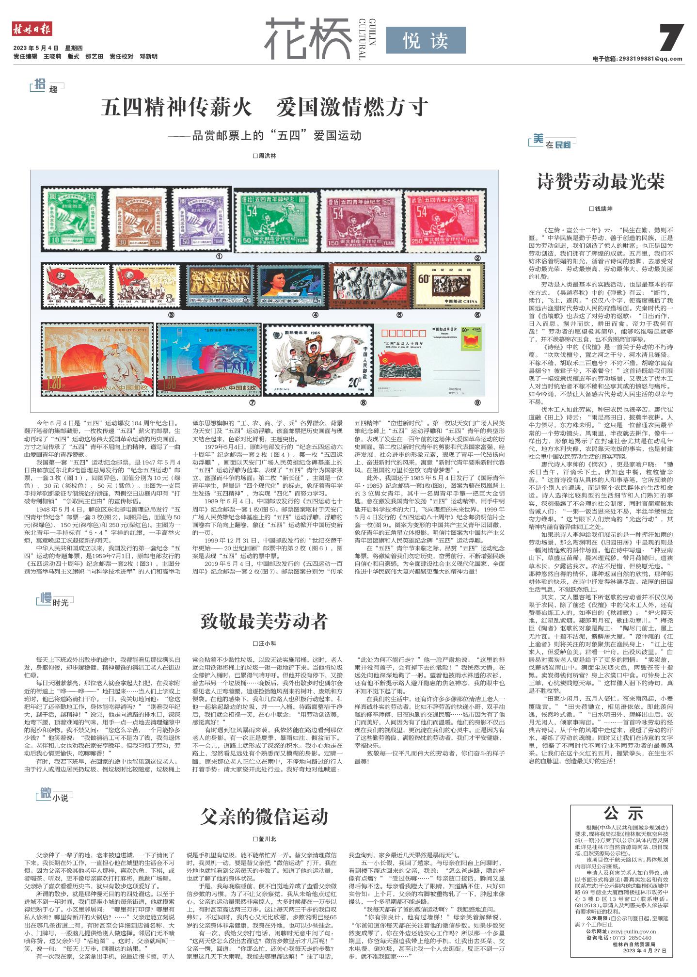 “田家少闲月,五月人倍忙。夜来南风起,小麦覆陇黄。”“田夫荷锄立,相见语依依。即此羡闲逸,怅然吟式微。”“白水明田外,碧峰出山后。农月无闲人,倾家事南亩。”……一首首吟咏劳动的经典古诗词,从千年的风霜中走过来,浸透了劳动的汗水,凝练了劳动的魂魄;同时又让我们在诗意的文字里,领略了不同时代不同行业不同劳动者的最美风采。让我们在这个火红的五月,握紧拳头,在生生不息的血脉里,创造最美好的生活!