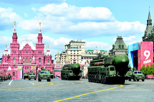 5月9日,在俄罗斯首都莫斯科,“亚尔斯”导弹系统编队驶过红场。 新华社记者曹阳 摄