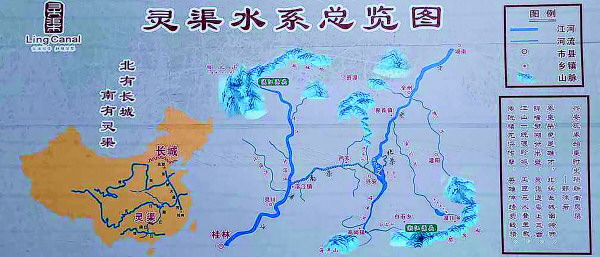 图②:灵渠总览图。 记者杨湘沙翻拍