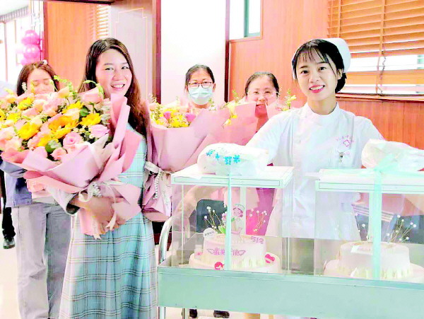 5月12日,国际护士节当天,平乐县中医医院给在岗护士送上节日蛋糕、鲜花等节日礼物,送上诚挚的问候。苏桂 摄