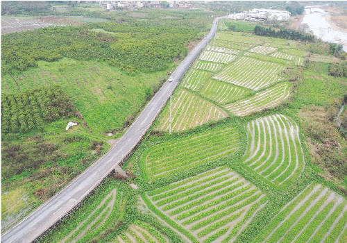 永福县永福镇大苏村级集体承包土地耕种航拍图。 王泽华 摄