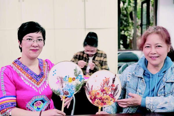在5月15日“国际家庭日”到来之际,为充分发挥家庭建设在基层社会治理中的重要作用,弘扬互敬互爱、和谐美好的家风,近日七星区穿山南社区在社区文化服务中心开展了“弘扬好家风”主题活动。20多位居民齐聚一堂,用各式各样的干花装饰扇面,制作出一把把寓意家庭和美、团团圆圆的漂亮团扇。