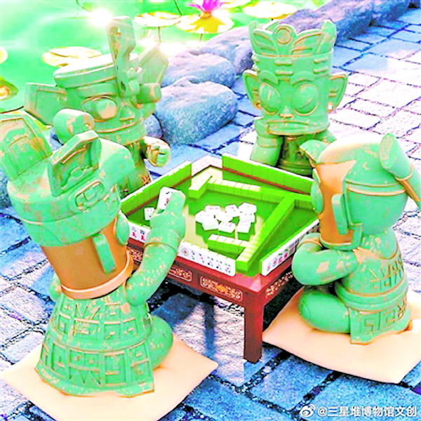 如何让文创衍生品有文化价值,其实来自博物馆自身IP,“马踏飞燕”毛绒玩偶的灵感来源于甘肃省博物馆的镇馆之宝铜奔马。而严肃的文物如何成为爆款,火速出圈并受到年轻人的喜欢,主要是文创产品独特的创意。例如三星堆博物馆川蜀麻将摆件中的青铜小人以三星堆出土文物中比较出名的一些形象为设计元素,有四个围坐一桌打麻将的,还有蜀绣、功夫茶、变脸等形象,憨态可掬,一经推出就受到网友关注。