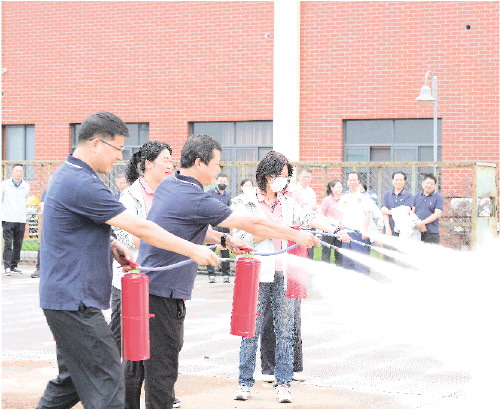 5月25日,桂林日报社党员体验使用灭火器灭火。 记者何平江 摄
