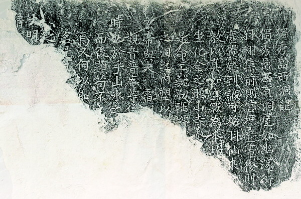 图①:五代靖江王朱佐敬撰《独秀岩西洞记》石刻拓片,石刻已残