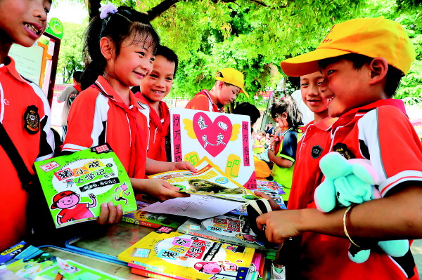 积小善,成大爱。5月29日,在“六一”国际儿童节来临之际,市英才小学开展红领巾公益义卖活动。活动现场,义卖商品丰富多样,手工制作的纽扣花束、帆布包、漂亮玩偶及小汽车、坦克等益智玩具。每卖出一件物品,孩子们的快乐与自豪油然而生。据了解,这次的爱心义卖所筹善款将全部捐给市阳光花园残疾人服务中心,将爱心化作行动。记者陈静 摄