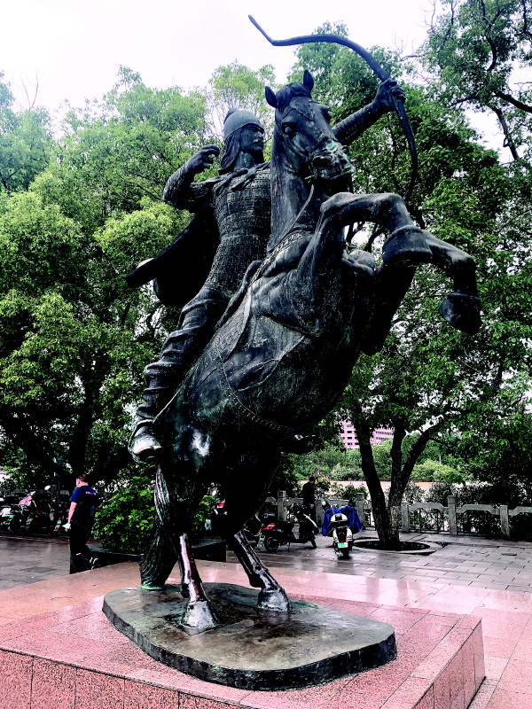 图②:今天伏波山前的马援跃马挽弓雕像。在国内所有的马援雕像中,堪称最有张力的一个。