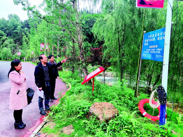 ▲督查组现场检查防溺水相关工作。(图片由龙胜各族自治县教育局提供)
