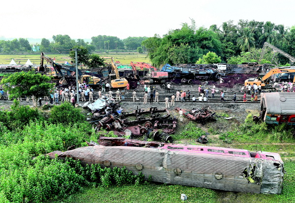 印度奥迪沙邦列车相撞事故现场(资料图片)