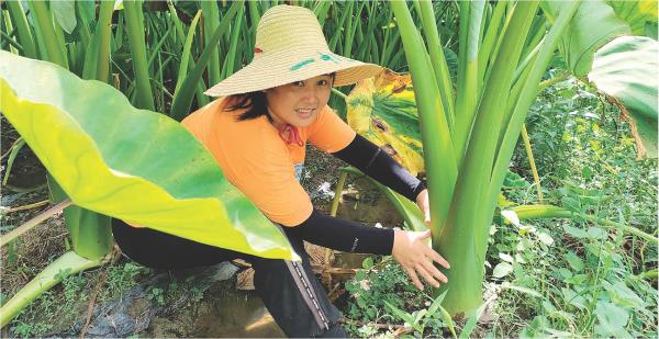 覃冬香指导农户种植的荔浦芋长势喜人。(受访者供图)