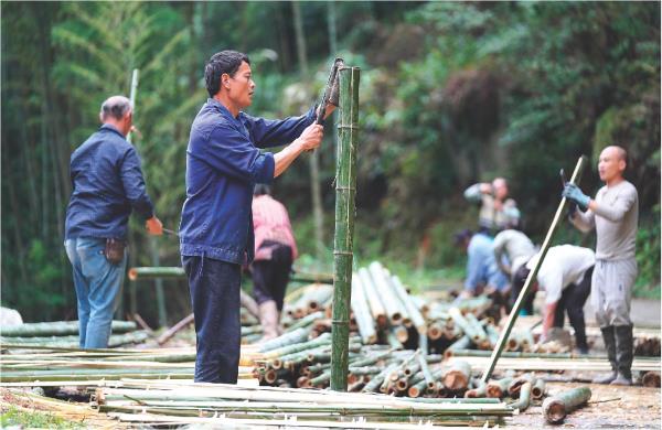 “现在正是砍竹麻最忙的时候。造纸的原材料要选择当年生长的嫩竹,这种嫩竹叫做竹麻。以前我们村家家户户都会用原始的传统手工技艺造纸,造出的纸叫土纸。”南坳村传统造纸手艺人邓义珠从16岁就开始学造土纸,他一边指挥工人砍竹麻,一边向记者介绍。