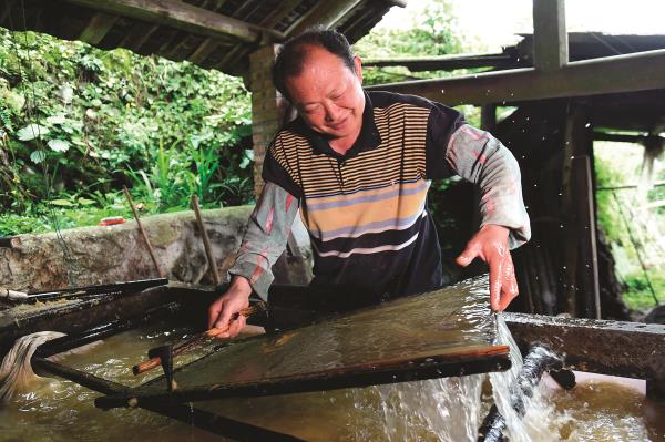 “土纸一般三张为一帘,九张为一叠,十叠为一把,一把卖10元钱。”邓义珠说,去年他向村民购买竹麻和请人工的费用达15万元,让村里人也多了一项收入来源。目前村里有约20家造纸小作坊,户均收入3万元以上。