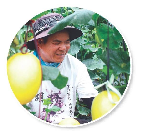 胡保仁在大棚里查看蜜瓜的长势。记者刘菁 摄