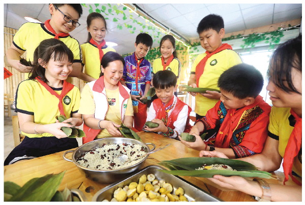 6月20日,七星区朝阳乡合心村委与合心中心校一起开展“我们的节日·端午”主题活动,孩子们通过体验式参与民俗活动,真正感受中华传统文化之美。记者陈静 摄
