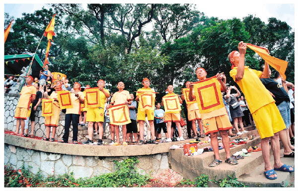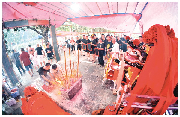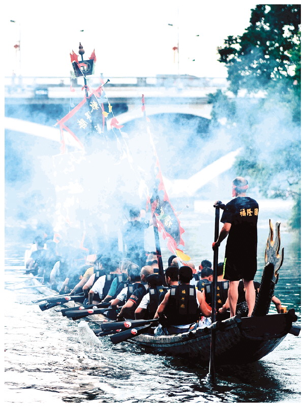 当有龙船经过村子的码头时,村里的长辈们就会这样行礼,船上的桡丁也会以鼓声和举起桡子回礼。