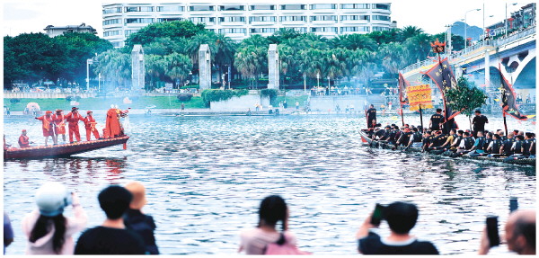 福隆园龙船向解放桥下划去。