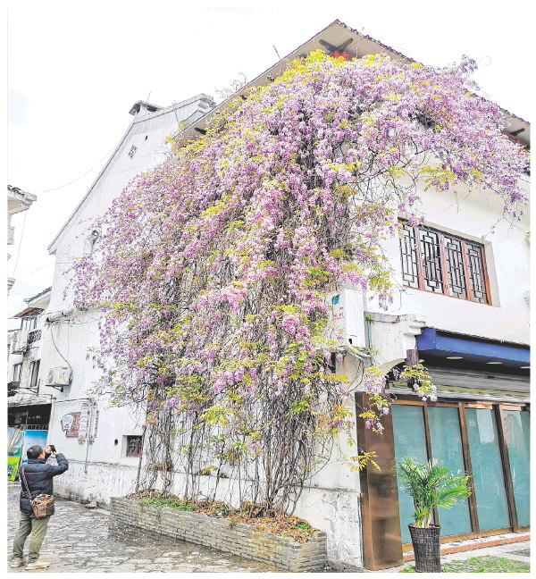 4月,鲁家村一户居民种植的紫藤盛开,把房屋装扮成美丽“花屋”。李腾钊 摄