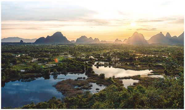 图①:会仙湿地日落。(资料图片)
