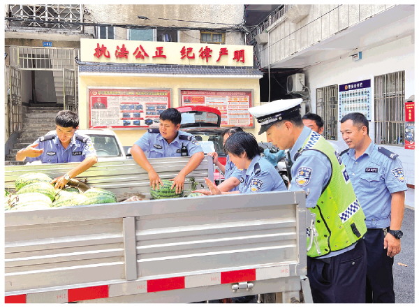 “天气炎热,西瓜确实不易储存。这样吧!你这车西瓜我帮你想办法卖掉。”执勤交警阳树首先自己掏钱买下了4个西瓜。这时正好临近中午,阳树将唐某的小货车开进了县交警大队。他一“吆喝”,很多同事了解情况后,也纷纷购买唐某的西瓜。