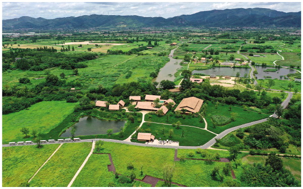 ▲这是在浙江省杭州市余杭区拍摄的良渚古城遗址公园(2022年7月6日摄,无人机照片)。 新华社记者黄宗治 摄