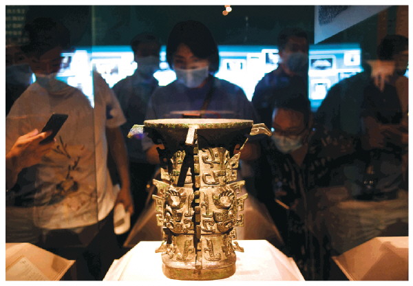 ▲观众在北京中国国家博物馆“宅兹中国——宝鸡出土青铜器与金文精华”展上参观西周早期礼器何尊(2020年8月14日摄)。 新华社记者金良快 摄