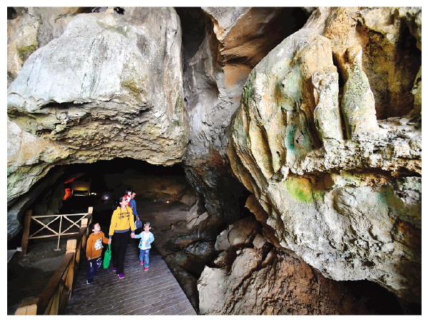 ◥游人在位于福建省三明市三元区岩前镇的万寿岩遗址船帆洞游览(2020年4月9日摄)。 新华社记者姜克红 摄