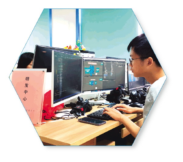 ▲在蓝港科技公司研发中心,程序员正在紧张地编写程序、开发软件。