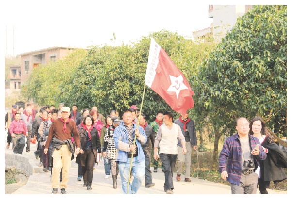 廖荣辉带领众多游客重走红军路。(廖荣辉供图)