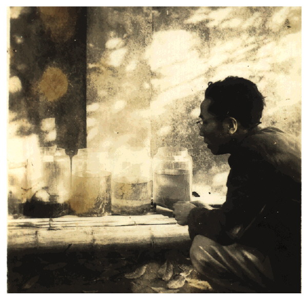 图①:过去,桂林水文站工作人员利用简单的仪器测试蒸发量。
