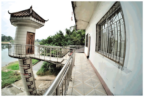 图③:1958年在漓江边象鼻山附近建立的桂林水文站观测亭。