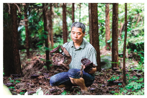 袁基均学到技术后很快就在自家以及租过来的167亩杉树林里种起了灵芝。然而,好事多磨,第一年不仅没有挣到钱还亏了本,但他没有动摇。种植技术逐渐成熟后,袁基均每年在扩大种植面积,还注册了自己的品牌,收入越来越好。2022年无论是产量还是价格都达到了最高,收入60多万元。