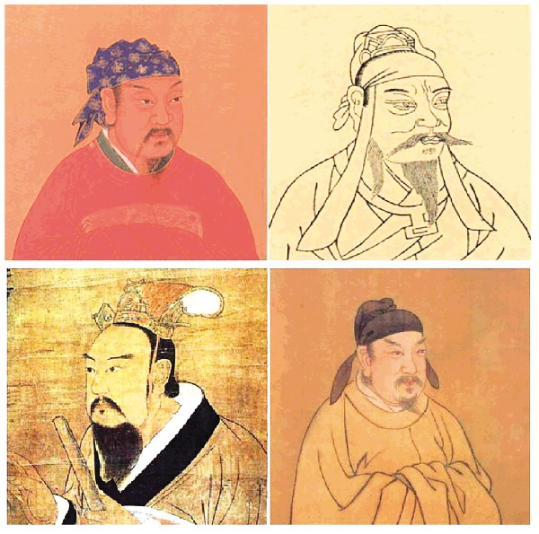 图①:南朝的代表性人物画像。左上为宋武帝刘裕;右上为齐高帝萧道成;左下是梁武帝萧衍;右下是陈武帝陈霸先。记者杨湘沙 翻拍