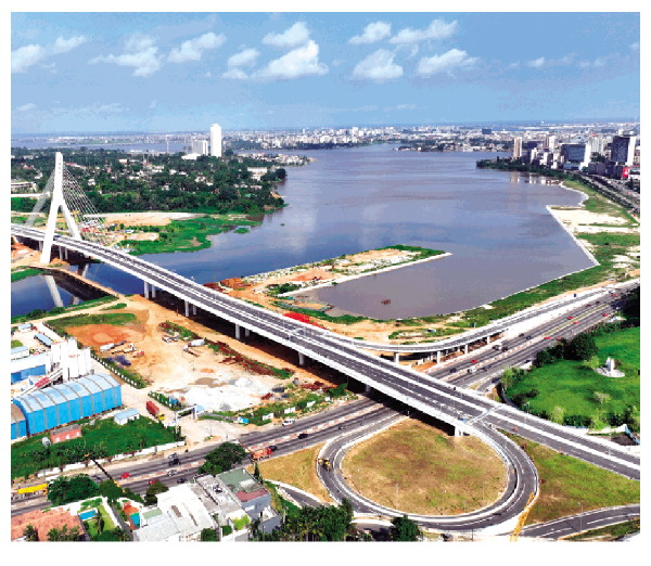 由中国路桥工程有限责任公司(中国路桥)承建的科特迪瓦经济首都阿比让科科迪斜拉桥项目12日竣工通车。科科迪桥项目主线总长约1.63公里,其中主桥为钢槽梁单塔斜拉形式,全长630米、主跨长200米、主塔高108.6米。