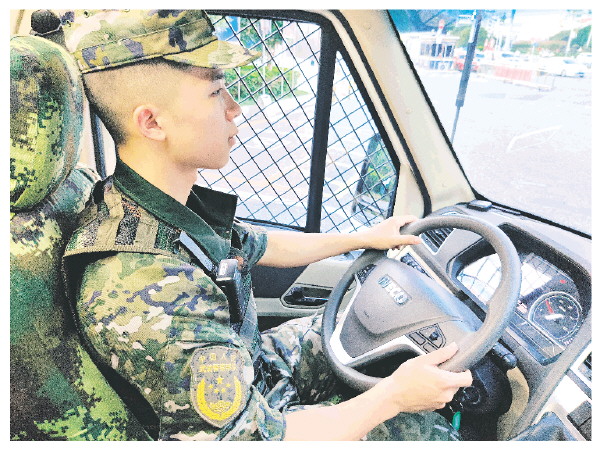 ◥武警官兵正在进行车巡。 施晨洲 摄