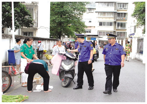 □见习记者黄敏 文/摄 8月18日早上7点30分,记者在叠彩区中北中路的爱心驿站门前看到,身着制服、精神抖擞的叠彩区城市管理监察大队中北中队的队员们在中队长霍新彪带领下准时集合,开始了一天的工作。 新中北菜市是他们每天工作的第一站,这里有一条商贩们自发形成的马路市场。在现场,记者看到,狭窄的道路两旁,蔬菜、水果、干货等摊位摆放有序,商贩们正自觉收拾商品陆续离开。 “这是新中北市场的商贩们和城管队员们形成的‘默契’。”霍新彪告诉记者,“每天8点前,商贩们都必须从马路上撤离,恢复交通,方便附近上班的居民顺利通行。” “到时间了,大家都收拾好货物,把道路让出来啊!”“您这门前的桶要收拾进店里,不要占道。”“这是谁的电动自行车,请把它停到指定位置!”……队员们一一提醒着商贩们注意一些细节。 记者了解到,来这里摆摊的基本是附近的村民,他们把自家种植的蔬菜瓜果就近进行销售,自发形成了一个马路市场,不仅影响市容环境,还影响早高峰车辆行人的正常通行。 为了规范管理,中北中队全面收集该市场的情况后,因地制宜采取措施。城管执法人员调整上班时间,每天早上7:30至下午6:30安排专人在这里进行疏导规范管理,这样既解决了附近村民的生计问题,又保障了周围居民的顺畅通行。霍新彪带领队员们到各个摊点前对摊贩逐个进行宣讲,对存在占道经营行为的,耐心引导其规范经营,并要求摊贩自觉做好摊位周边环境卫生。 “刚开始很多人不理解我们的工作,认为我们是不让他们做生意,对我们态度不好,也不听我们的,经常会发生一些摩擦。”霍新彪说,“作为执法人员,我们遇到这种情况就需要耐心地给他们讲解市容和环境卫生管理条例,告诉他们这样做是违反了条例的第几条,慢慢地他们也开始意识到自己的问题了。”刚开始,霍新彪每天都要带着《条例》去市场,现场给商贩们翻阅讲解,后来他已将条例熟记于心,随口就能道来。即便如此,现在霍新彪手机里搜索关键词排第一位的还是“市容和环境卫生管理条例”。 “目前的情况就是今天你看到的样子。大家都自觉遵守规定,到时间了就撤走。”记者看到,8点整,整条街道干净整洁,畅通无阻。8点10分左右,道路上的机动车和电动自行车逐渐多了起来。 结束新中北菜市的巡查,霍新彪和队员们便开始进行当天的路巡工作。“我们这项工作的主要内容就是对辖区内电动车乱停乱放、商户超门槛经营、游动商贩在路边售卖等情况进行整治。” 霍新彪告诉记者,电动自行车乱停乱放的现象比较普遍,有的市民图方便随意将车停在商铺门口,有的市民懒得将共享电动车推上台阶直接停在路边,甚至有人不管不顾将车辆横放于道路上。“规劝车主将电动车挪走、将共享电动车推到指定位置摆放整齐、扶起倒下的共享电动车,是我们每天做得最多的工作。”从叠彩区政府门口到万达广场,霍新彪和队员们一路上都在处理电动自行车乱停乱放带来的各种问题。即使身上的制服已经被汗水湿透,他们也没有停下脚步。 “你们每天都要这样步行巡查吗?”记者好奇地询问。“这就是我们的工作,不管刮风还是下雨,烈日还是冰雹,我们都要通过巡查,发现问题解决问题。”霍新彪笑着说,“我的微信步数每天都在微信好友中居前几名呢!” 在路巡的过程中,霍新彪接到了好几通电话,有12345市政热线接到举报投诉需要辖区城管解决问题的,有环卫工人工作过程中遇到问题需要城管到场的,有中队队员在路巡过程中发现情况向他汇报的,还有社区工作人员询问投诉单进度的。“我们每天都在处理这些琐碎的事情。”说完这句,霍新彪再次接起了电话。 从8点到12点,记者跟随霍新彪他们的脚步,体验了他们的路巡工作,其间,他们将20余辆共享电动车抬到指定位置,规劝一名驾驶面包车在路边卖西瓜的游商到指定区域售卖,前往万达广场附近的漓江边巡查是否有小孩在没有成人的陪伴下下河游泳,到居民小区巡查违法建筑整改情况、处理居民投诉邻居违规饲养家禽的问题。就像霍新彪说的,工作内容很琐碎,但每一件都跟市民的生活息息相关。 匆匆吃过午饭,霍新彪和队员们顶着中午的大太阳又开始了新一轮的路巡。 在记者看来,城市管理工作人员一边要守护城市的烟火气,满足市民们对美好生活的追求;一边也要管理好城市的市容环境卫生,保障市民们的出行安全便利——他们,值得每一位市民尊重。