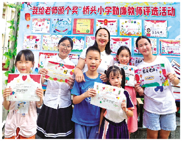“宝藏老师奖”“最温柔老师奖”“最具亲和力老师奖”“最博学老师奖”“最可爱班主任”“金牌老师奖”……在第39个教师节来临之际,市桥头小学开展了“我给老师颁个奖”活动。同学们自己绘制奖状并赠送给老师们。他们以这种独特的方式表达自己对老师的敬意与喜爱。记者韦莎妮娜 通讯员熊体康 摄