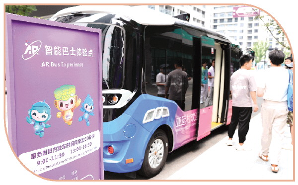 9月12日,媒体记者体验AR智能巴士。新华社记者翁忻旸 摄