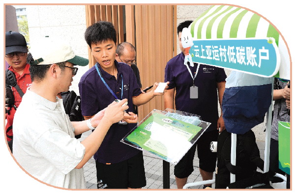 9月12日,工作人员指导媒体记者开启云上亚运村低碳账户。新华社记者翁忻旸 摄