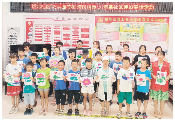 近日,北门街道城北社区开展“巧手画荷花,清风润童心”清廉社区建设宣传活动。活动现场,在志愿者的指导下,孩子们手持画笔,用心描绘出一幅幅美丽的荷花图画,并踊跃分享自己所画的荷花以及彼此对荷花和“廉”的理解和感受。 吕炫晔 摄