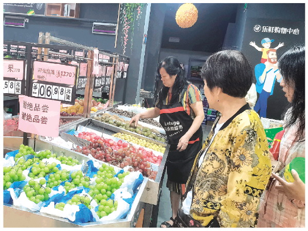 ◤叠彩区清秀路一家超市内,顾客在选购“阳光玫瑰”葡萄。