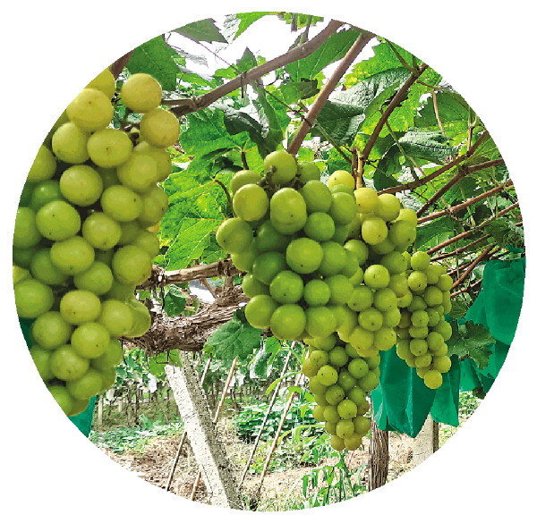 ◥兴安县溶江镇富江村一葡萄园内,“阳光玫瑰”葡萄挂满枝头。