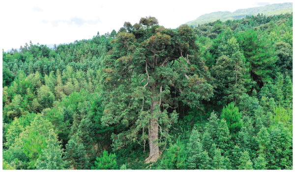 ▲松木寨中最古老的一棵古杉,距今已上千年。