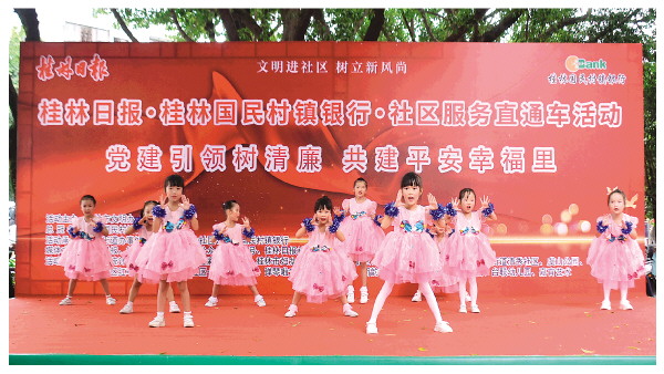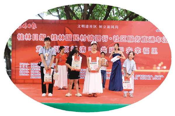 9月16日,由桂林市文明办和桂林日报社联合主办,桂林国民村镇银行总冠名,叠彩街道办事处、叠彩街道虞山社区、清秀社区、桂林国民村镇银行承办的“党建引领树清廉 共建平安幸福里”暨桂林日报·桂林国民村镇银行社区服务直通车活动在北极广场拉开帷幕。截至目前,社区服务直通车行程过半,已连续举办8场,所到之处均为居民献上了丰盛的精神文化“大餐”。