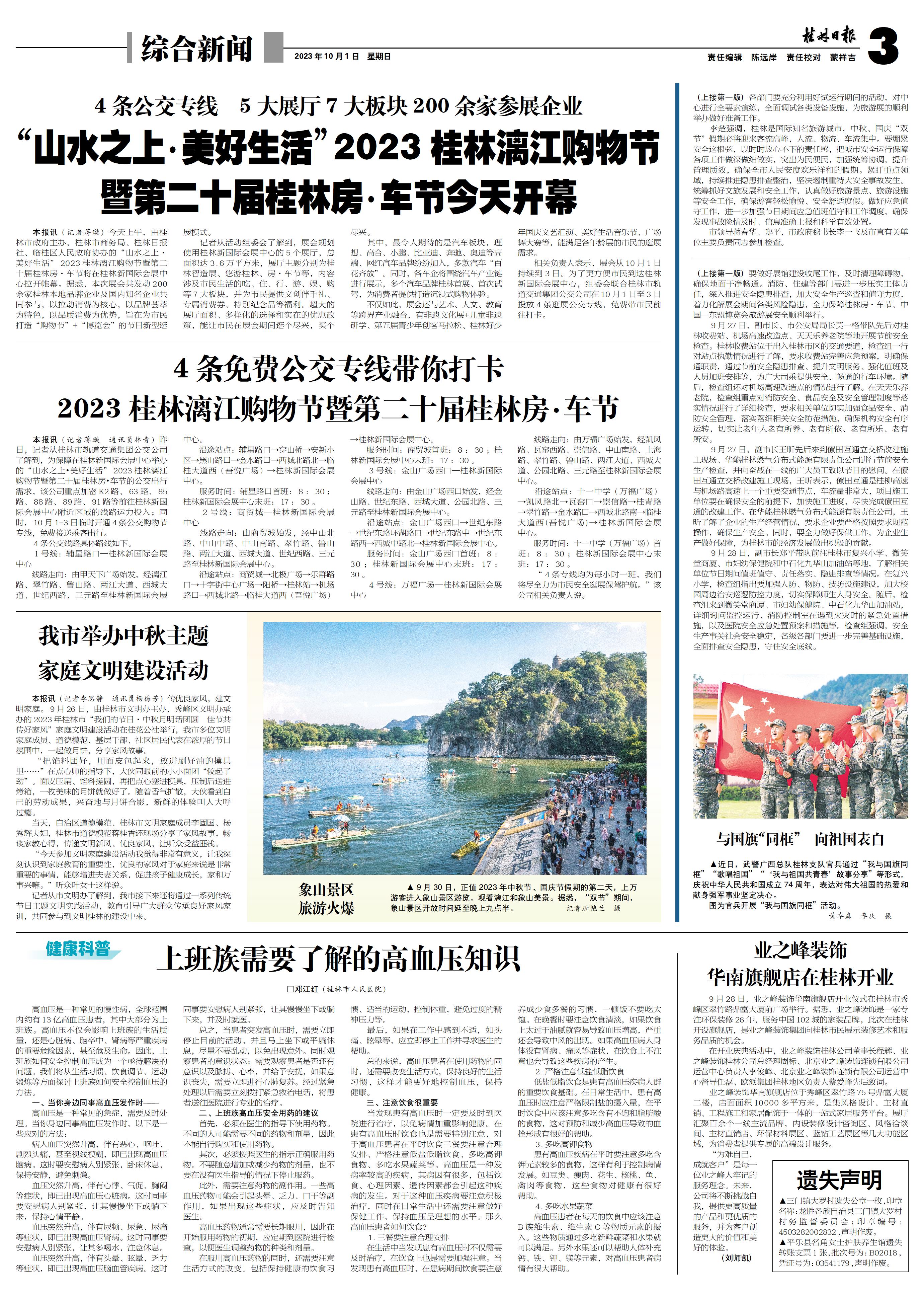 (上接第一版)要做好展馆建设收尾工作,及时清理障碍物,确保地面干净畅通。消防、住建等部门要进一步压实主体责任,深入推进安全隐患排查,加大安全生产巡查和值守力度,着力化解展会期间各类风险隐患,全力保障桂林房·车节、中国—东盟博览会旅游展安全顺利举行。 9月27日,副市长、市公安局局长莫一格带队先后对桂林收费站、机场高速改造点、天天乐养老院等地开展节前安全检查。桂林收费站位于出入桂林市区的交通要道,检查组一行对站点执勤情况进行了解,要求收费站完善应急预案,明确保通职责,通过节前安全隐患排查、提升文明服务、强化值班及人员加班安排等,为广大司乘提供安全、畅通的行车环境。随后,检查组还对机场高速改造点的情况进行了解。在天天乐养老院,检查组重点对消防安全、食品安全及安全管理制度等落实情况进行了详细检查,要求相关单位切实加强食品安全、消防安全管理,落实落细相关安全防范措施,确保机构安全有序运转,切实让老年人老有所养、老有所依、老有所乐、老有所安。 9月27日,副市长王昕先后来到僚田互通立交桥改建施工现场、华能桂林燃气分布式能源有限责任公司进行节前安全生产检查,并向奋战在一线的广大员工致以节日的慰问。在僚田互通立交桥改建施工现场,王昕表示,僚田互通是桂柳高速与机场路高速上一个重要交通节点,车流量非常大,项目施工单位要在确保安全的前提下,加快施工进度,尽快完成僚田互通的改建工作。在华能桂林燃气分布式能源有限责任公司,王昕了解了企业的生产经营情况,要求企业要严格按照要求规范操作,确保生产安全。同时,要全力做好保供工作,为企业生产做好保障,为桂林市的经济发展做出积极的贡献。 9月28日,副市长郑平带队前往桂林市复兴小学、微笑堂商厦、市妇幼保健院和中石化九华山加油站等地,了解相关单位节日期间值班值守、责任落实、隐患排查等情况。在复兴小学,检查组指出要加强人防、物防、技防设施建设,加大校园周边治安巡逻防控力度,切实保障师生人身安全。随后,检查组来到微笑堂商厦、市妇幼保健院、中石化九华山加油站,详细询问监控运行、消防控制室在遇到火灾时的紧急处置措施,以及医院安全应急处置预案和措施等。检查组强调,安全生产事关社会安全稳定,各级各部门要进一步完善基础设施,全面排查安全隐患,守住安全底线。