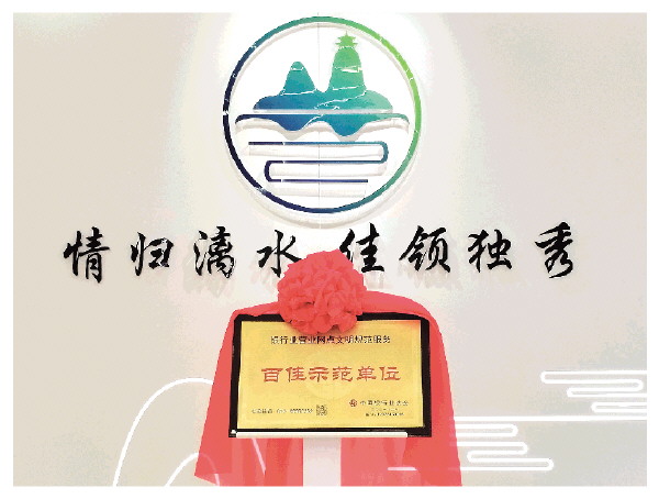 建行桂林分行营业部获授“银行业营业网点文明规范服务百佳示范单位”牌匾。(图片由建行桂林分行提供)