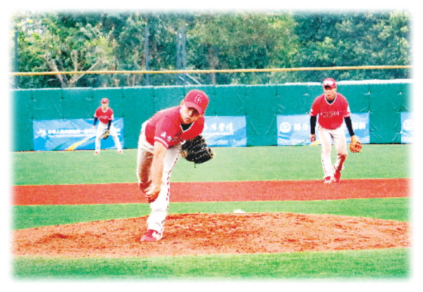 四川成都队投手投球。