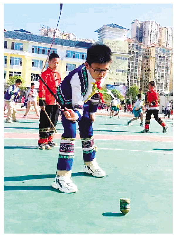 “打陀螺是广西少数民族传统体育项目,我们因地制宜,把这项传统体育项目融入到学校的校本课程中,就是在为国家培养健康人才的同时,传承和发扬民族传统文化,提升学生的文化自信。”复兴小学校长张丹东说。