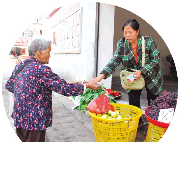 ▼相当多的老年人购买水果、蔬菜时依旧使用纸币支付。